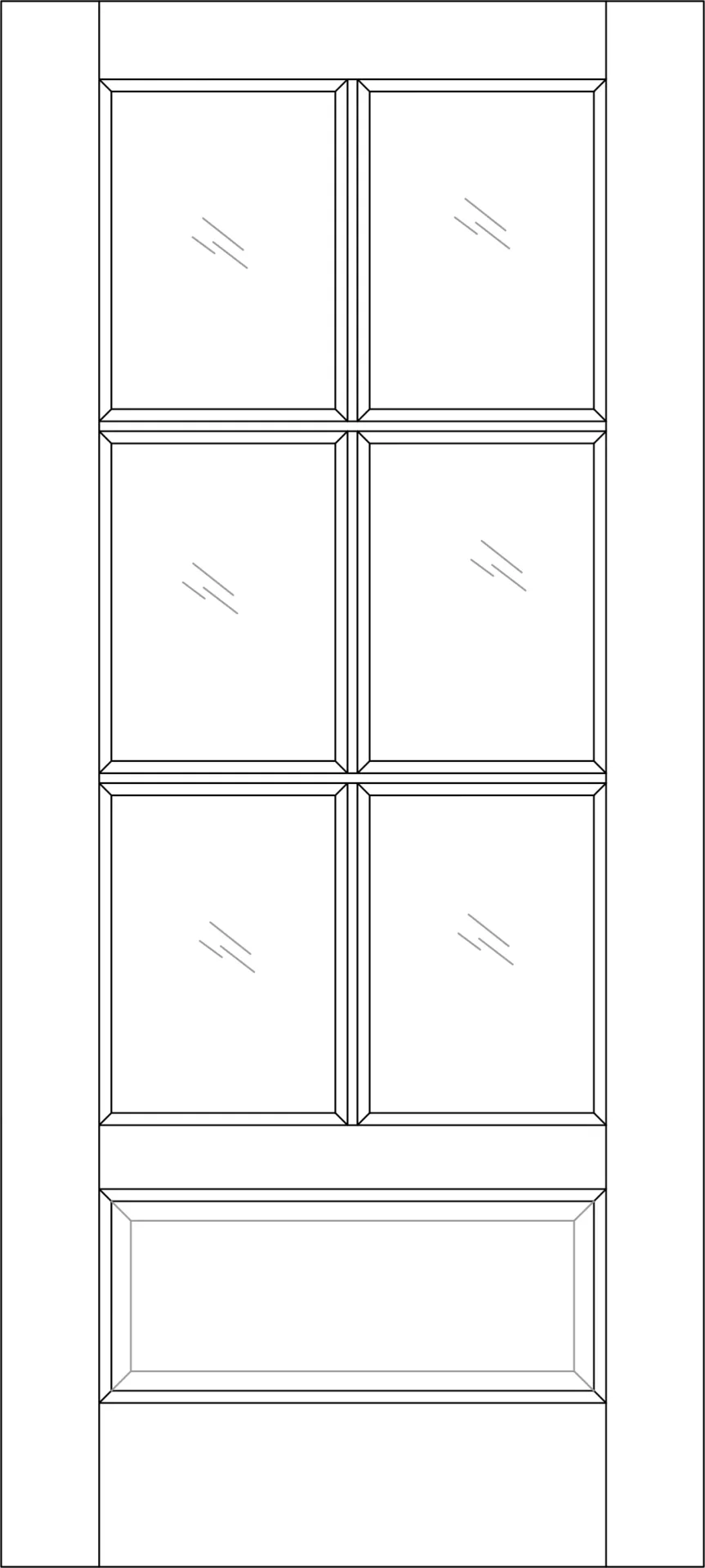 When you click on one of the line drawings to the right, you will see large pictures of unfinished doors that were pulled directly from our production line to give you an idea of how our doors look. Please remember that since wood is a natural product, variations in color, grain, and texture will occur. Regardless of the type of wood shown in a particular design picture, all designs are available in all species of wood that we sell.